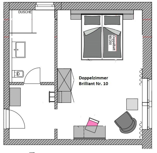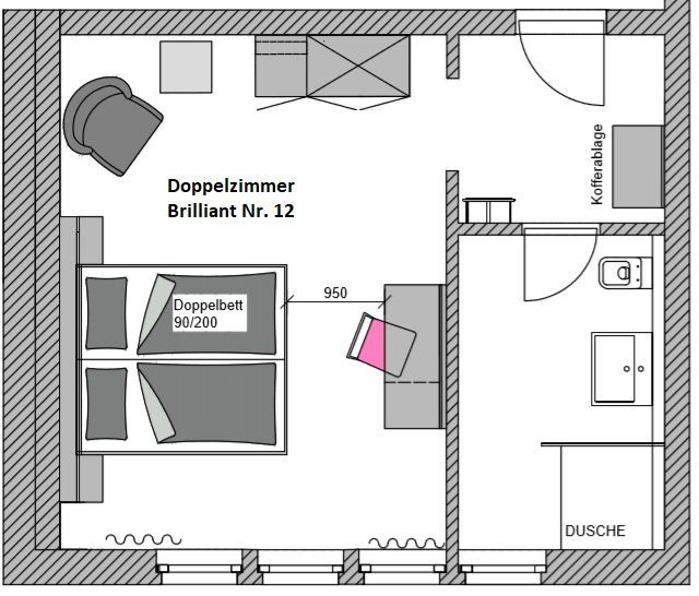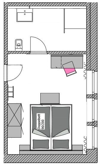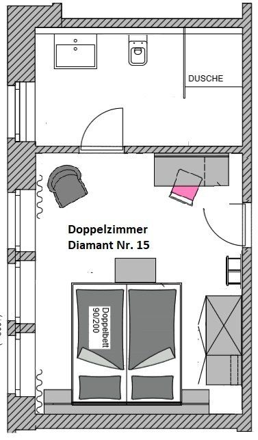 Unsere Doppelzimmer Diamant haben um die 21-26m²